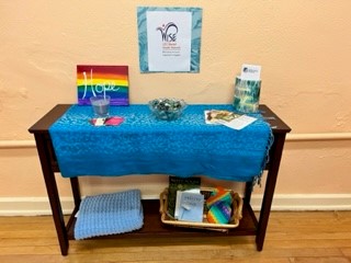 We set up a space in our church library with pop fidgets, mediation prayers, a prayer shawl, prayer stones, etc.; a welcoming space offering a sense of peace and quiet. A space that is available if you are feeling anxious or if you just ‘need a moment’. Sometimes when we come to church, we are not always able to leave our anxieties or troubles at home.